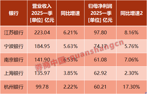 一季度江苏银行、宁波银行、上海银行、南京银行、杭州银行实现利息净收入分别为165.92亿元、128.35亿元、83.24亿元、77.52亿元、65.02亿元辉煌优配,同比增长分别为21.94%、11.59%、4.65%、17.80%、6.83%。