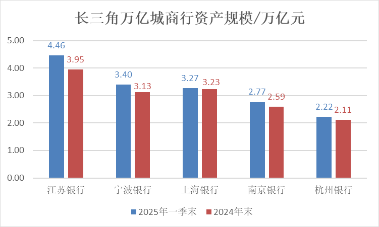 随着长三角地区站上万亿元规模的城商行一季报陆续披露,资产规模座次微妙变阵。